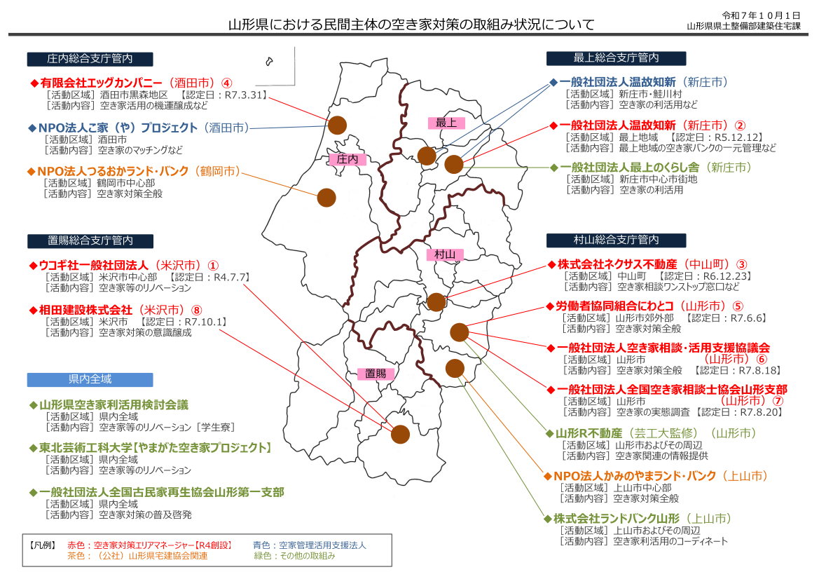 山形県内には、当協議会の他にも地域の空き家の対策に取り組んでいる個人・企業・団体があります。